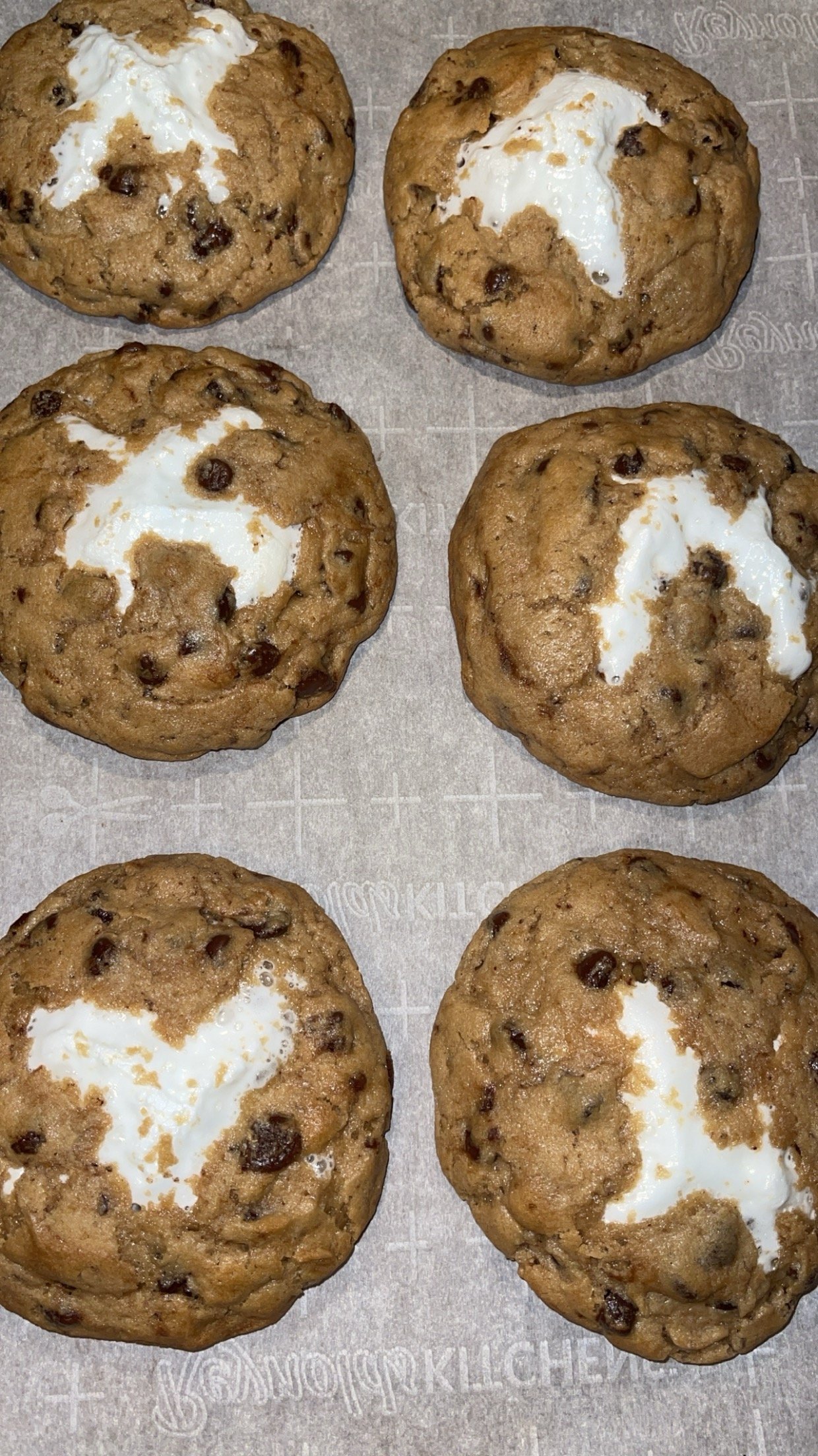 Graham crackers, milk chocolate and marshmallows topped with chocolate chip cookie dough.